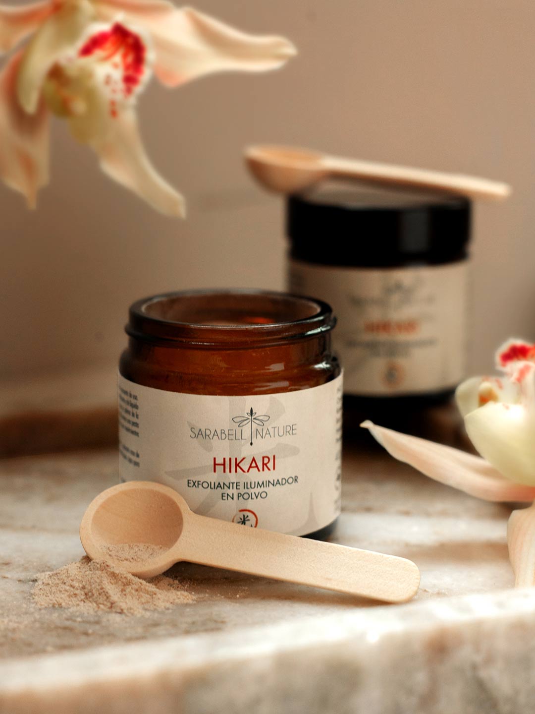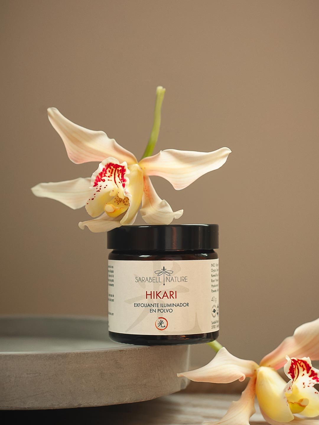 Hikari es un exfoliante facial en polvo que se activa con agua en el momento de uso. Su textura fina se transforma en una pasta suave que limpia delicadamente, afina la textura de la piel y ayuda a revelar un tono más uniforme y luminoso.